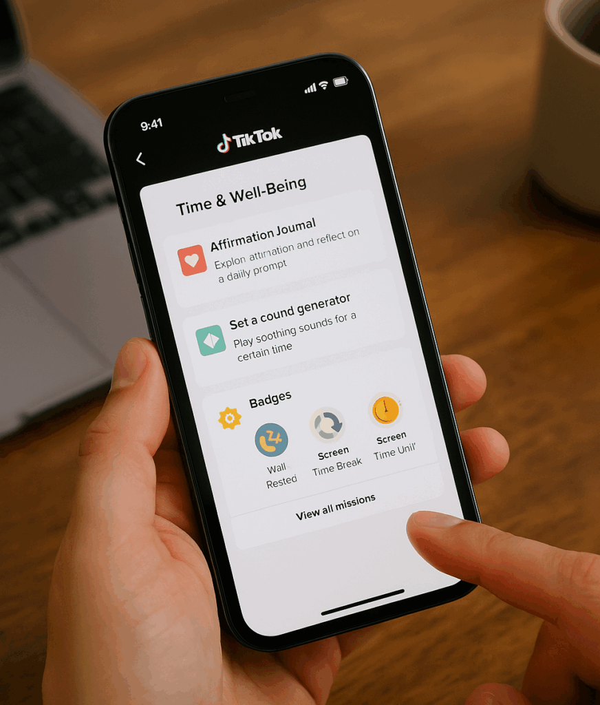 TikTok, ena najbolj priljubljenih družbenih platform na svetu, se je odločil narediti korak v smeri bolj zdrave in zavestne uporabe. V novi posodobitvi aplikacije je predstavil funkcije, ki spodbujajo dobro počutje uporabnikov, med njimi dnevnik afirmacij, generator pomirjujočih zvokov, in značke za uravnoteženo uporabo.